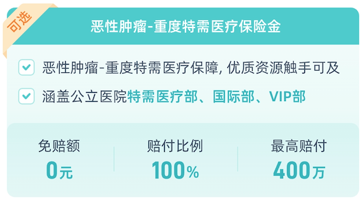 考慮到患重度癌癥的痛苦和抗癌的艱辛,惡性腫瘤-重度特需醫療保險金(可選)全方位升級看病體驗!