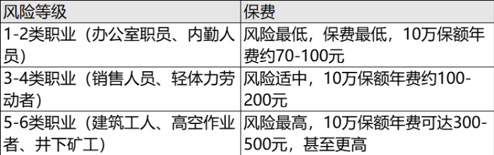 1.公司員工意外險(xiǎn)職業(yè)類別:風(fēng)險(xiǎn)等級(jí)決定基礎(chǔ)費(fèi)率